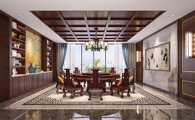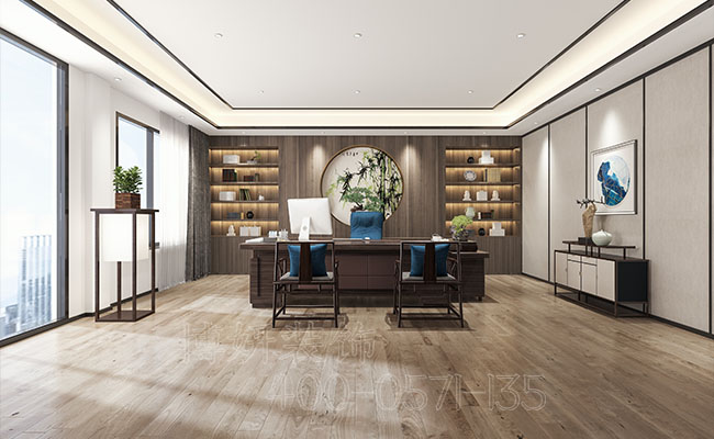 而办公室和会议室的装修颇有种古典的风格装饰,而和现代简约风格组合起来就变成了新中式古典的特有风格。